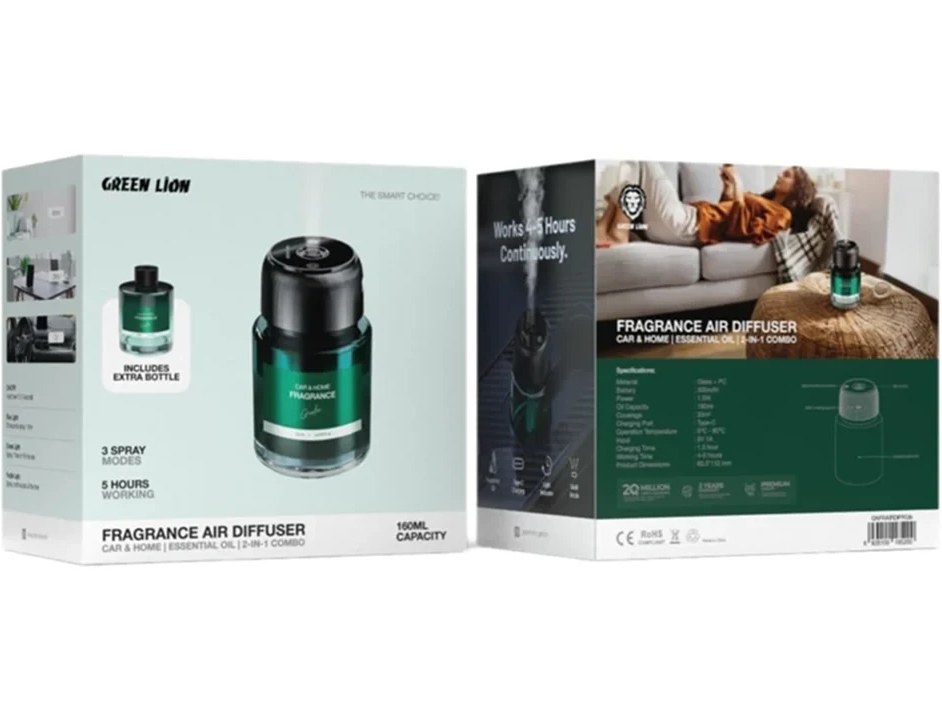خوشبو کننده هوا Green Lion Fragrance Air Diffuser یک دستگاه مدرن و کاربردی برای پخش یکنواخت و ماندگار رایحه در فضاهای مختلف است. این دیفیوزر با طراحی شیک و مینیمال، علاوه بر خوشبو کردن محیط، به ایجاد حس آرامش، طراوت و تمرکز کمک می‌کند. مناسب استفاده در خانه، محل کار، خودرو، فروشگاه و اتاق خواب بوده و با پخش یکنواخت عطر، محیطی دلنشین و خوشایند ایجاد می‌نماید.این محصول گزینه‌ای ایده‌آل برای افرادی است که به کیفیت هوا و فضای اطراف خود اهمیت می‌دهند و می‌خواهند بدون استفاده از اسپری‌های شیمیایی، محیطی خوشبو داشته باشند.