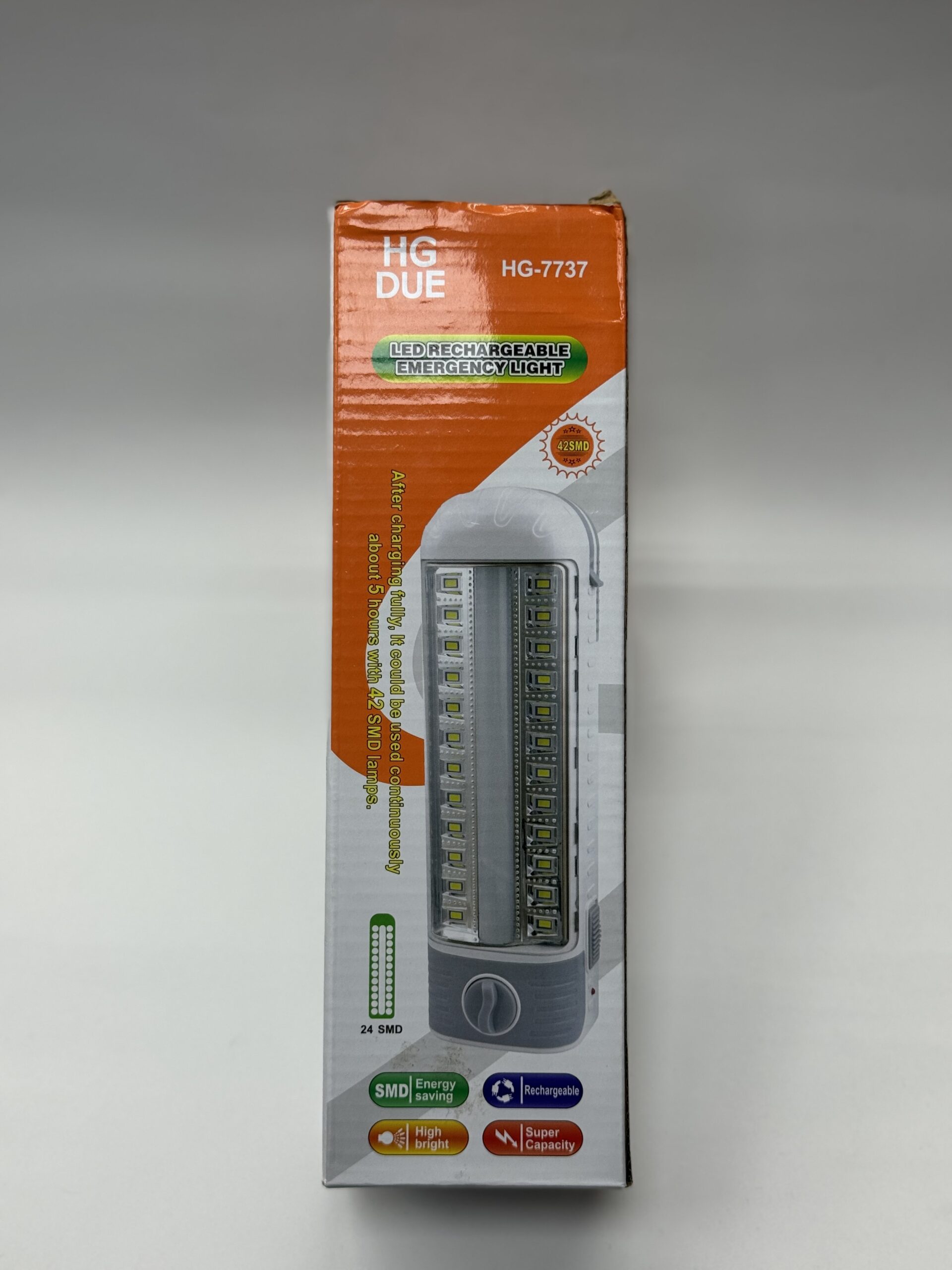 چراغ اضطراری شارژی LED مدل HG7737 با طراحی کممصرف و پرنور، گزینهای ایدهآل برای استفاده در مواقع قطعی برق، کمپینگ، سفر یا فعالیتهای شبانه است. این چراغ مجهز به 24 لامپ SMD کممصرف (24 SMD Energy Saving) بوده که در عین صرفهجویی در انرژی، نوردهی بالایی (High Brightness) ارائه میدهد.این مدل دارای باتری قابل شارژ با ظرفیت بالا (Super Capacity) است که پس از هر بار شارژ، روشنایی مداوم و مطمئنی را برای شما فراهم میکند. بدنه سبک و طراحی قابلحمل آن، استفاده در خانه یا فضای باز را بسیار ساده میسازد.