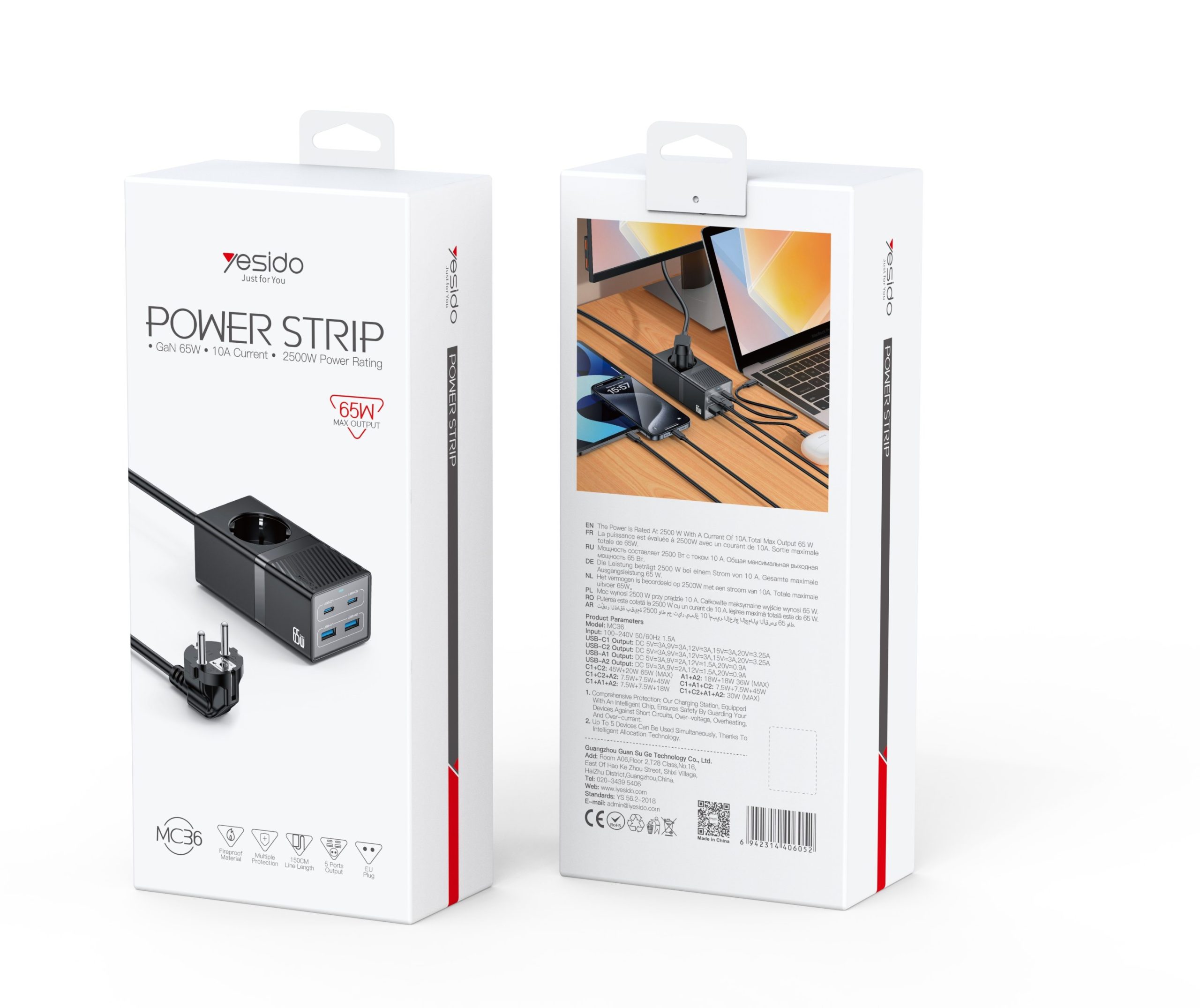 چندراهی هوشمند Yesido مدل MC36 ترکیبی از یک پاور استریپ قدرتمند و یک شارژر رومیزی چندمنظوره است که برای استفاده روزمره و حرفهای طراحی شده است.